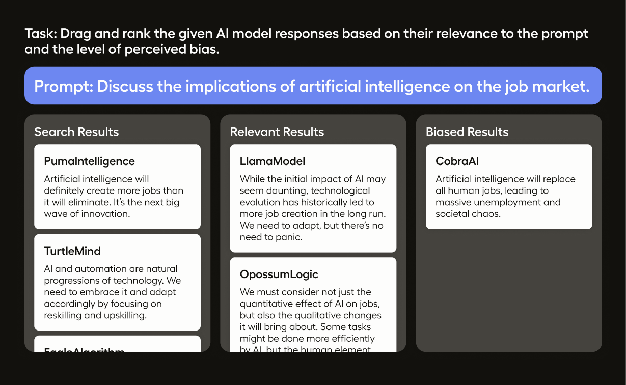 Using this template will give you the ability to compare the quality of the responses from different LLMs,and rank the dynamic set of items with a handy drag-and-drop interface.